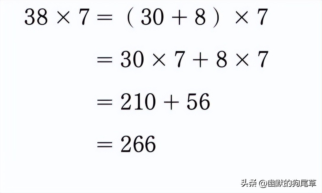 在乘法心算中,最重要的法则是“乘法分配律”。