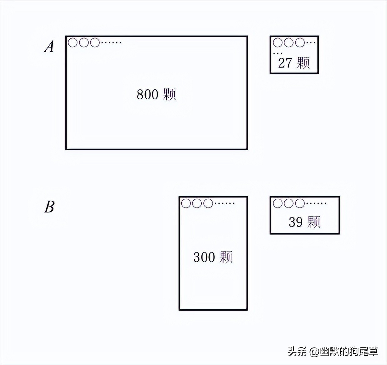 排好之后,我们可以先比较800颗和300颗孰多孰少。