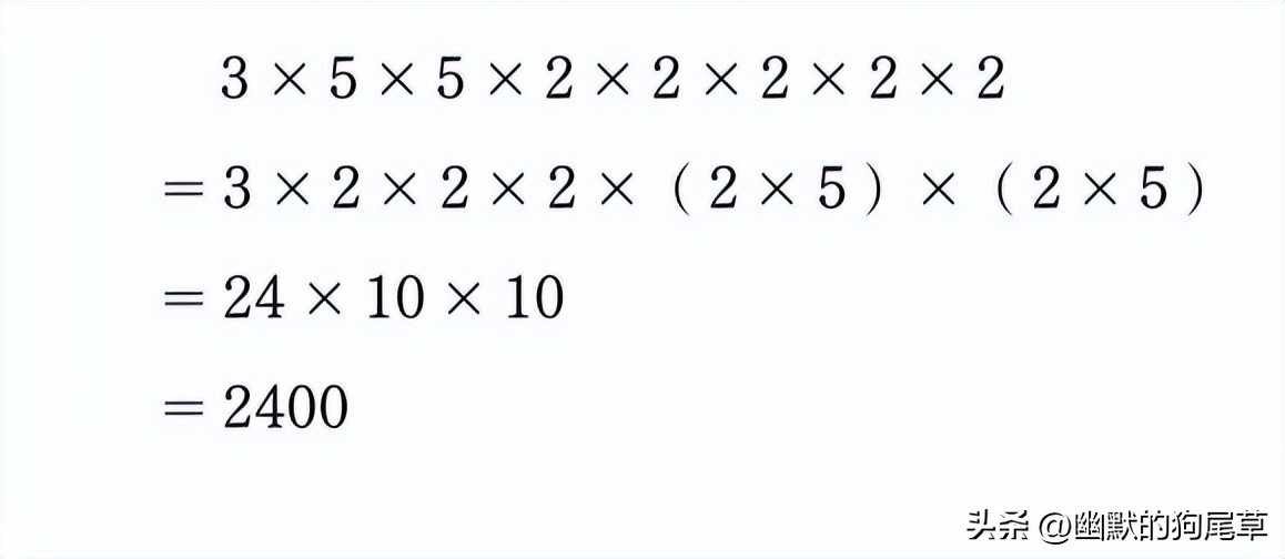 (3)我们基本上都知道25×4=100,那么75=3×25,32=4×8,3×8=24,后面再添两个0即得2400。