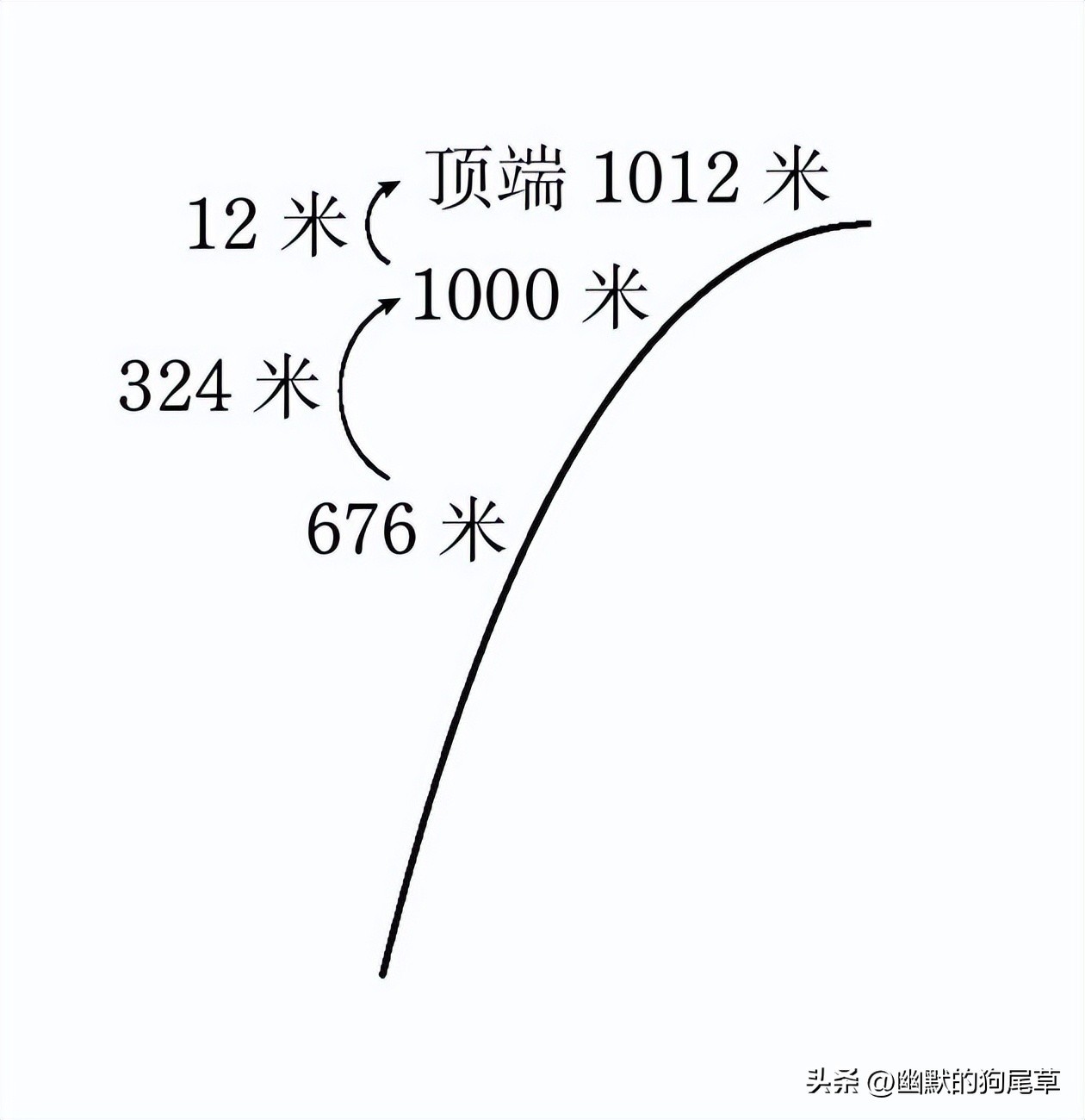 用上一节的方法,从676米到1000米需要324米。最后还剩12米,即676米到顶端的高度差为336米。