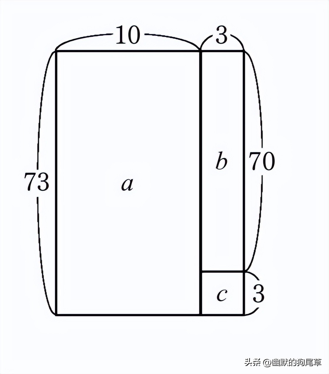 看图即可发现,a的面积为730,b的面积为210,c的面积为9。将所有和相加,得到949的答案。