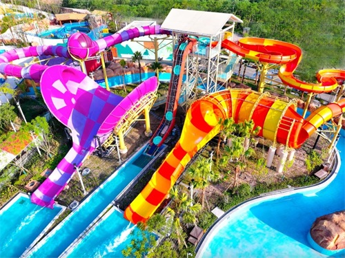 作为全国著名、世界知名的水上乐园,在这里,最耀眼的明星当属全球首台动力旋转设备“摇滚巨轮”。德国精工打造的透光滑道如同巨型万花筒,游客在瑞士定制的镭射灯光中俯冲旋转时,皮肤能感知水流与光影的变奏曲。“巨蟒”滑道则把心跳玩成盲盒游戏——长达6米的封闭管道里,水流会突然带你体验360°螺旋震颤,像被吸入未知的深海漩涡。