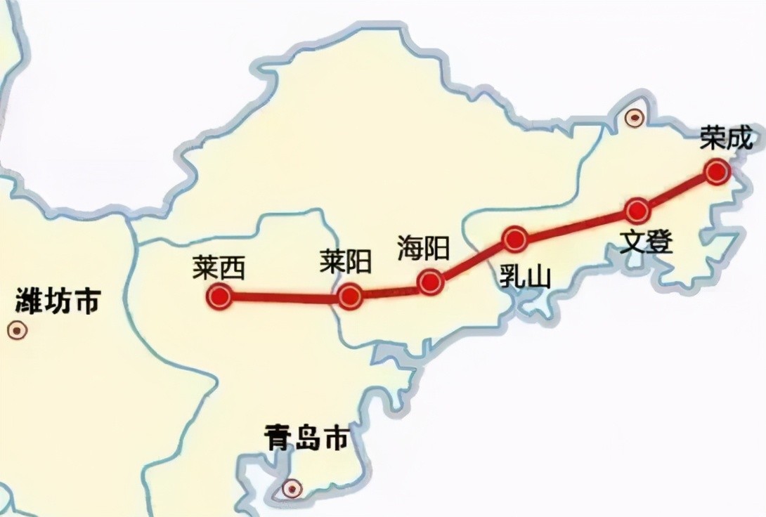 莱荣高铁西起莱西北站,经青岛、烟台、威海,接入荣成站,正线长193公里,总投资297亿元,全线设莱西北、莱阳丁字湾、海阳、乳山南、威海南海、文登南、荣成7座车站,建设工期3.5年,由于疫情有一定影响,预计2022年至2023年通车。