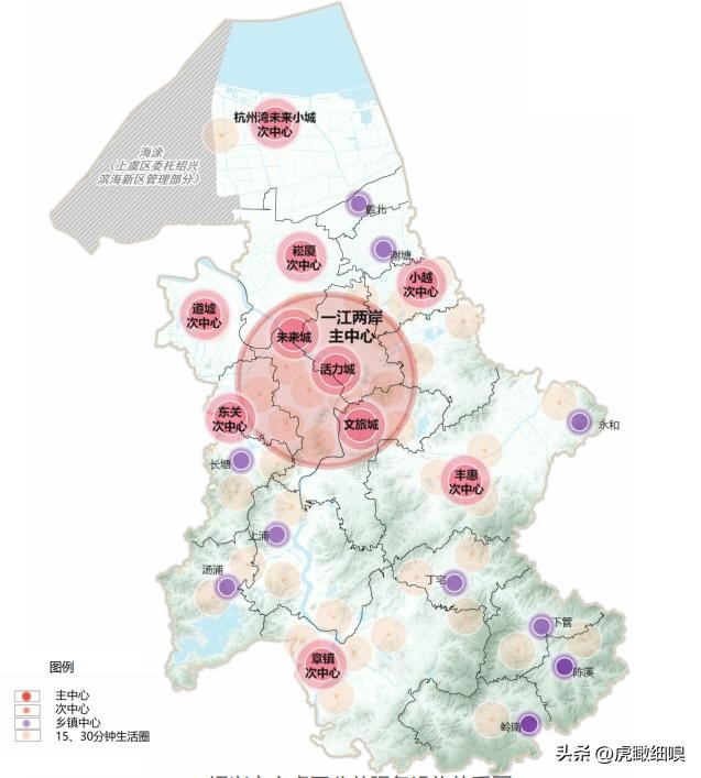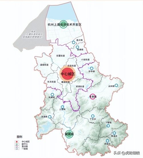 • 2个副中心:杭州湾上虞经济技术开发区、章镇镇。