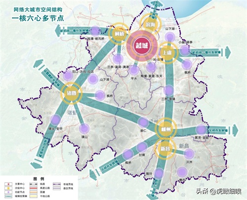策略二:织网串珠, 构建网络城。重点引领,拥江西进;助力绍兴市构建“一核六心多节点”网络大城市。
