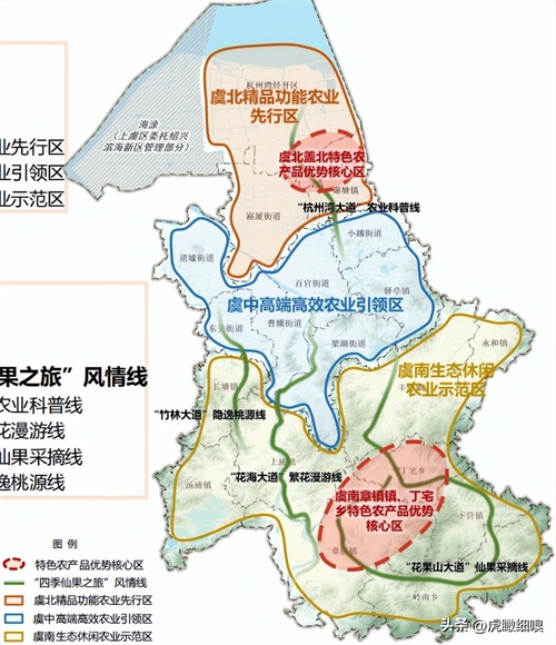 三区:虞北精品功能农业先行区、虞中高端高效农业引领区、虞南生态休闲农业示范区。