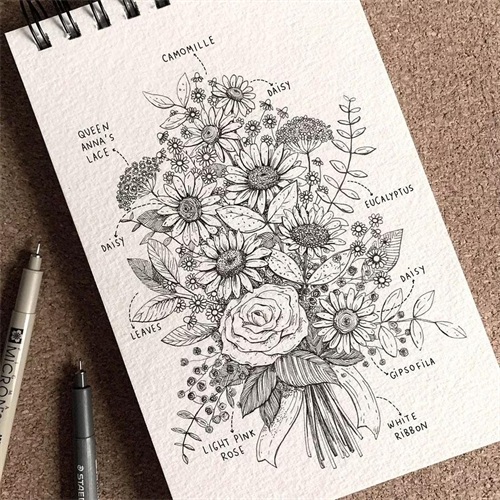 到增加花束的手绘
