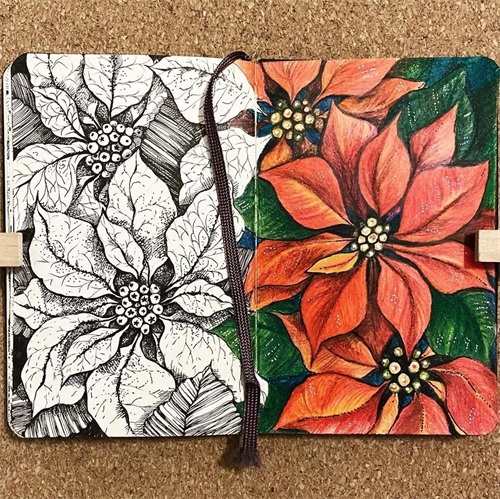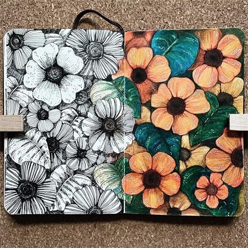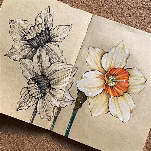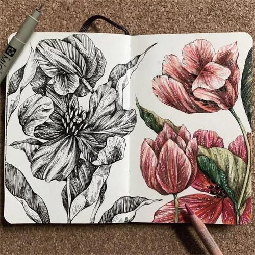 右边用彩铅或者水彩、马克笔等上色