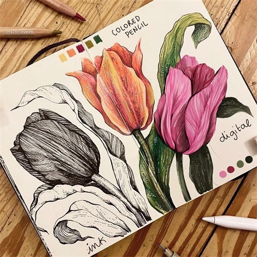 可以从简单的手绘到上调子的线描