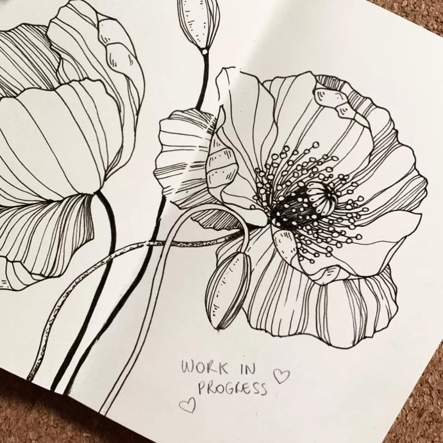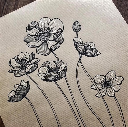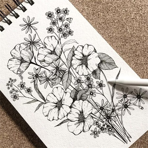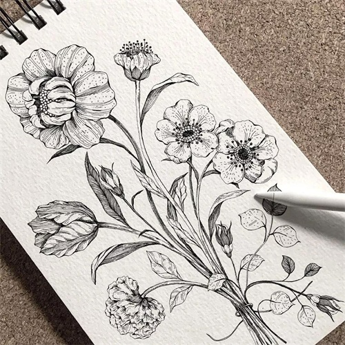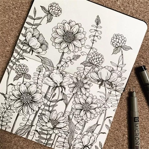 手绘线描植物画