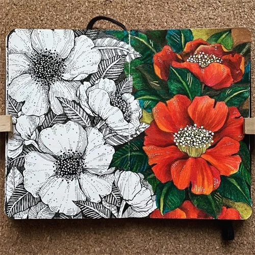 这位画家甚至还会剪下来贴在画本里