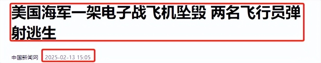 2.中国新闻网-2025.02.13-《美国海军一架电子战飞机坠毁 两名飞行员弹射逃生》