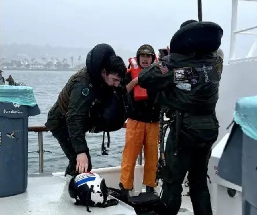 幸运的是,附近一艘渔船的船员目睹了这一幕,迅速驾驶渔船赶了过去,将两名飞行员救上了船。