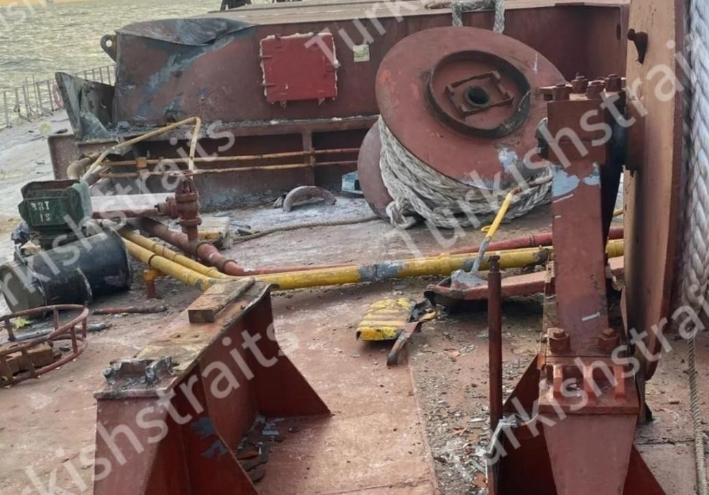 系泊链设备也扭曲断裂,耷拉在一旁,甲板上散落着各种杂物,一片狼藉。
