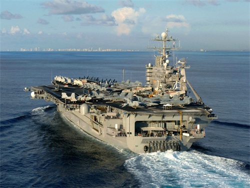 它身披尼米兹级核动力航母的荣耀,332.8米的身长和40.8米的腰围,再加上105500吨的体重,无不彰显着它的非凡气度。