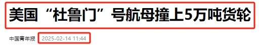 2025年2月14日凌晨,美国海军引以为傲的杜鲁门号核动力航母,在埃及塞得港附近,与一艘商船“狭路相逢”,发生了剧烈碰撞。