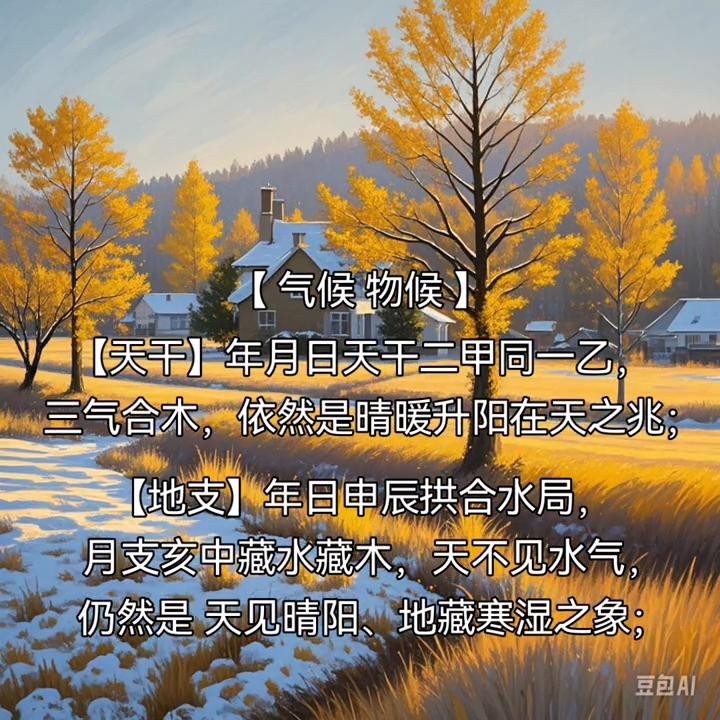 ·【天干】年月日天干二甲同一乙,三气合木,依然是晴暖升阳在天之兆。