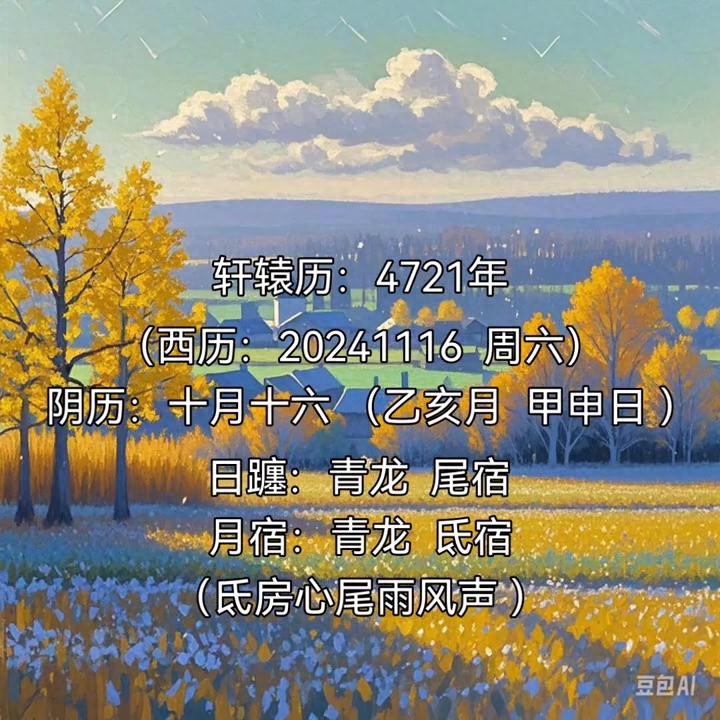 轩辕历:4721 年(西历:20241116 周六),阴历:十月十六(乙亥月甲申日)。