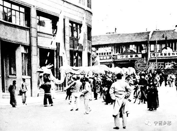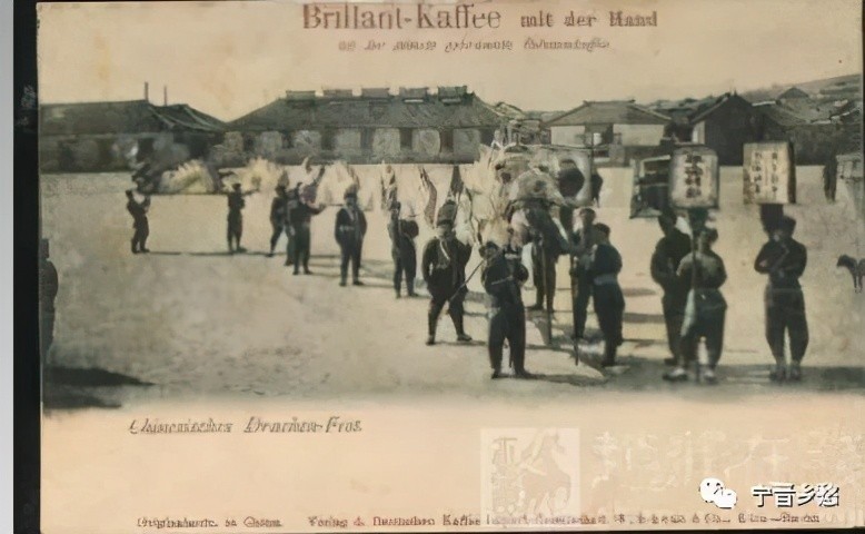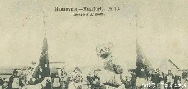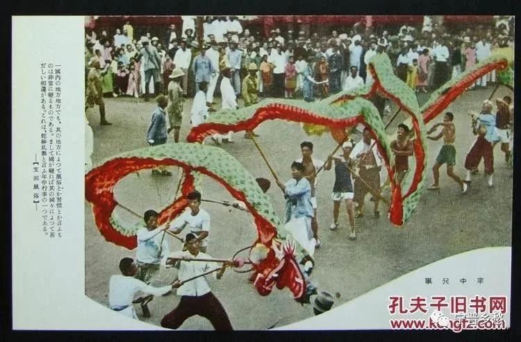 清末侵华明信片,过新年时一场舞龙表演。舞龙是历史悠久的传统民俗文化活动之一。每逢喜庆节日,人们都会舞龙,不仅春节、端午节时舞龙,平时店铺开业、庆祝生日也会借此热闹一番。百姓以这种方式来祈求平安、和美。