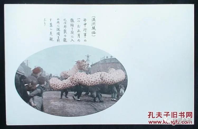 日本侵华 《满洲风俗明信片》 。正月舞龙。
