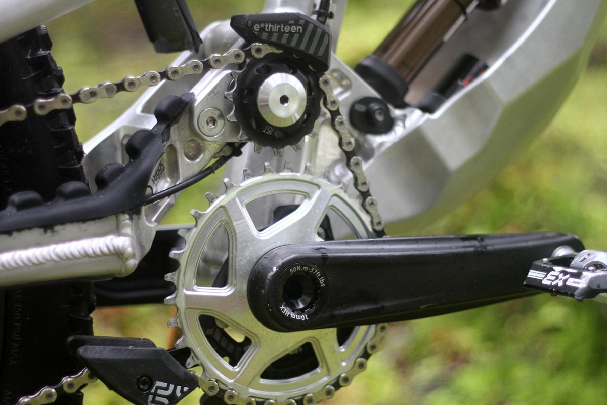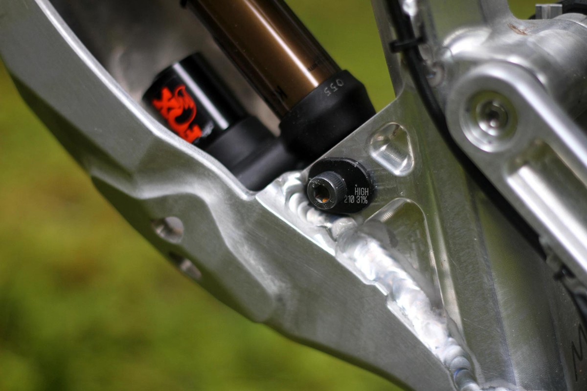 虽然我们还没有得到品牌确认信息,但看起来Intense已经和i-track达成协议,使用他们获得专利的浮动惰轮悬挂平台。在威廉堡上,车队在该原型车上分别使用了弹簧后胆和气压后胆,后胆位置下方的设有倒装芯片。车架后刹位置还设有三个孔位,难道是支持三种碟片规格?Intense会在量产车型延用原型车的设计吗?值得期待。