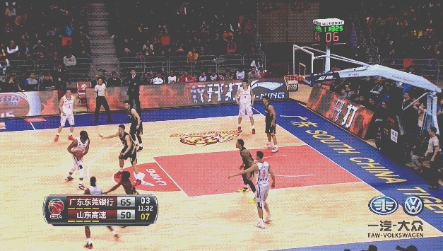 镜头一:周鹏抢断发动快攻,将球传给快下的卡特,形成二打一,面对睢冉的退防,卡特将球传给跟进的易建联,阿联接球起跳完成一记暴扣。