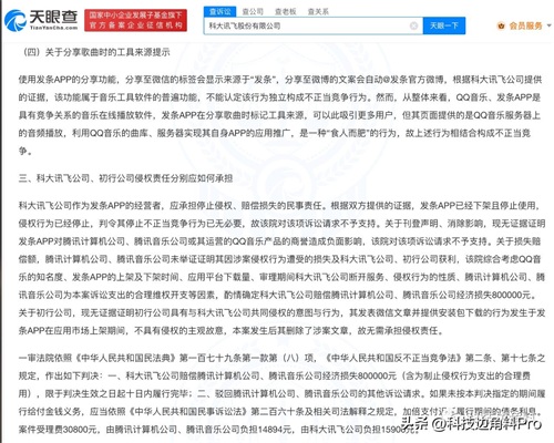 科技边角料获悉深圳市腾讯计算机系统有限公司、腾讯音乐娱乐(深圳)有限公司与科大讯飞股份有限公司等网络不正当竞争纠纷二审民事判决书日前公开,宁波市中级人民法院维持一审判决,科大讯飞需赔偿腾讯公司经济损失80万元(含为制止侵权行为支出的合理费用)。