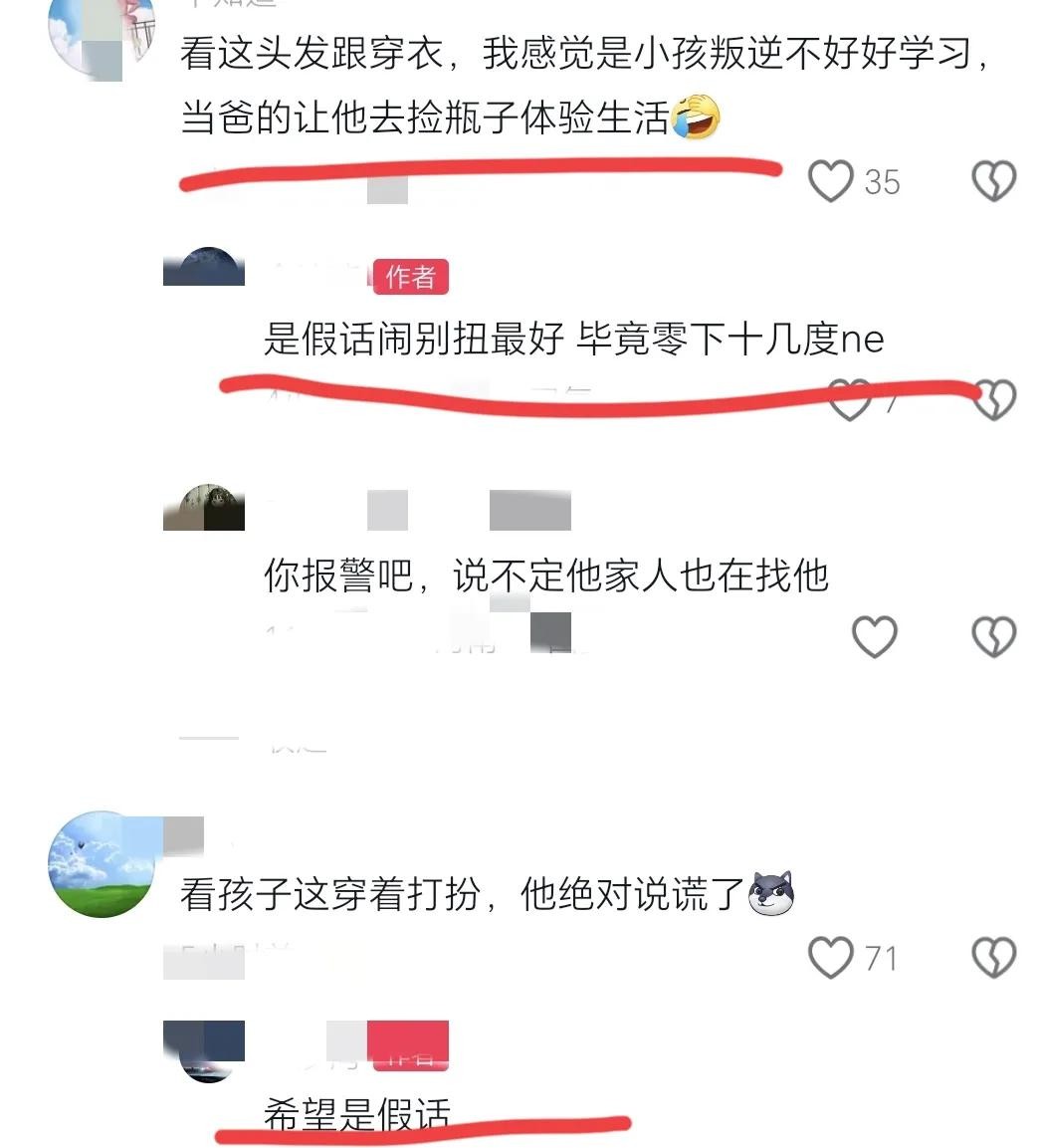 但网友的眼睛是雪亮的,有人说“小男孩身上穿的虽然薄,但却是名牌,发型也不像是流浪的人”。