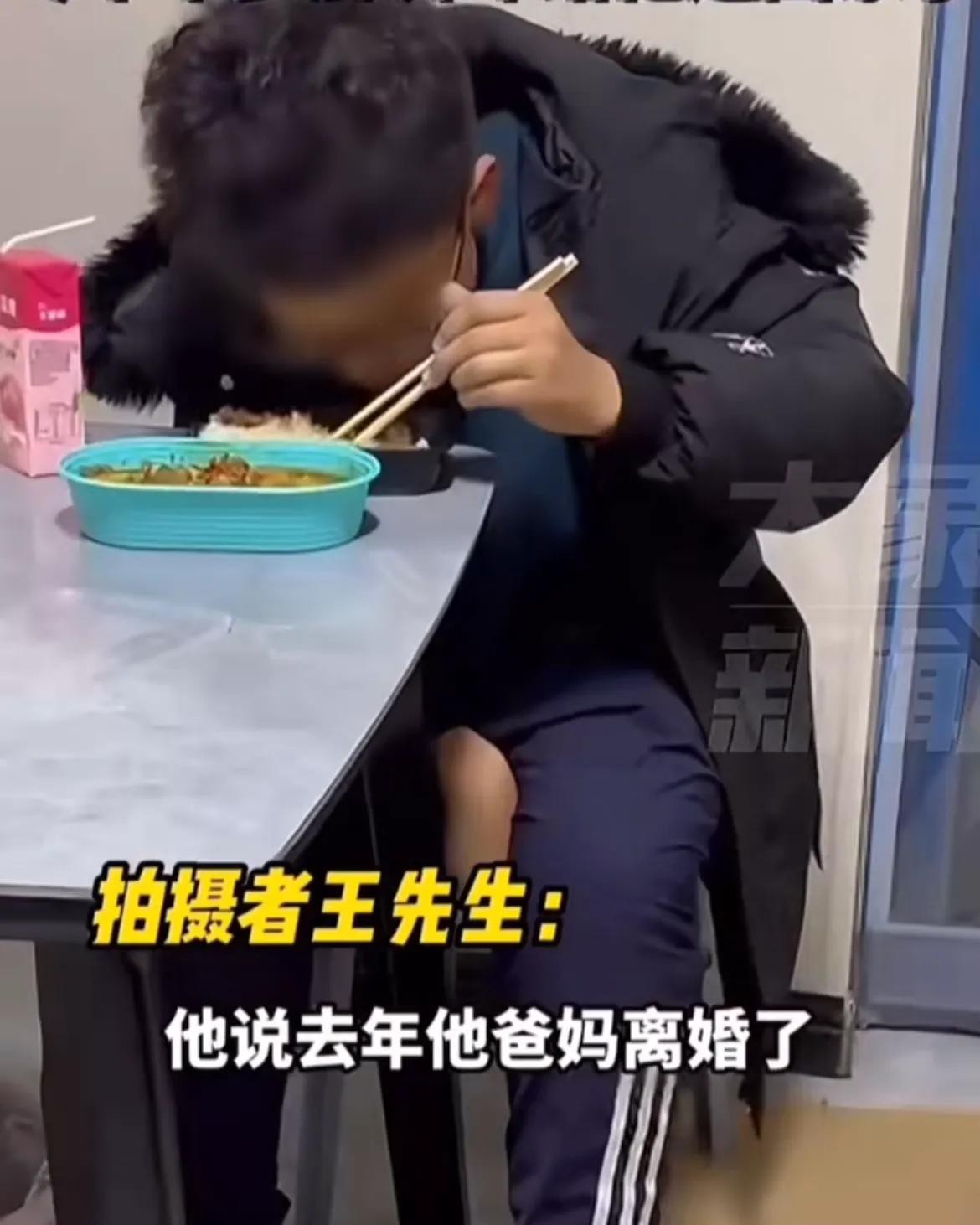 王先生看到他的遭遇挺让人心疼,就带他到自己店里,给他端了份热饭热菜,让他好好暖暖肚子。