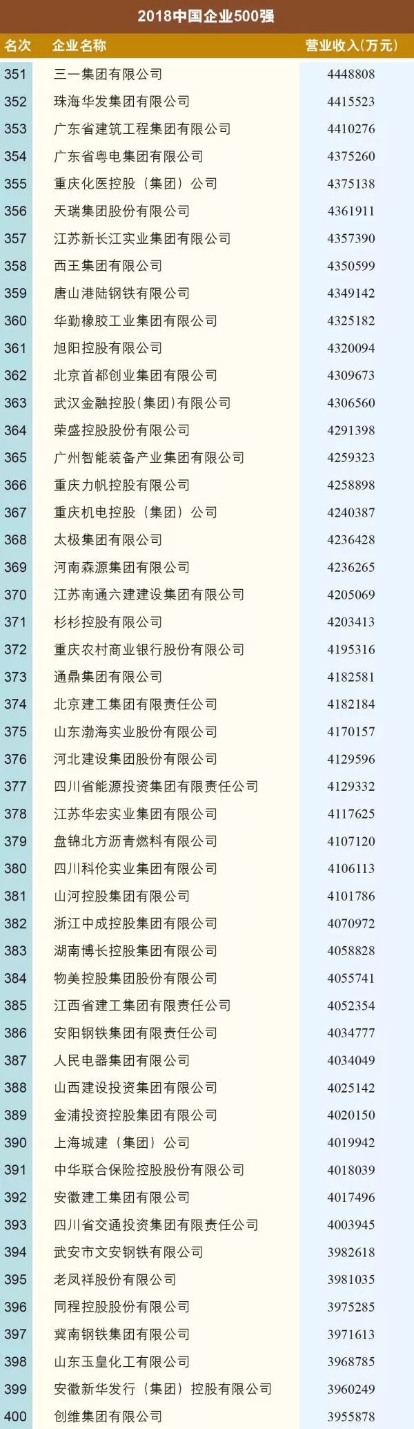 9月2日,由中国企业联合会等机构连续第17次向社会公开发布的“中国企业500强”排行榜正式出炉。