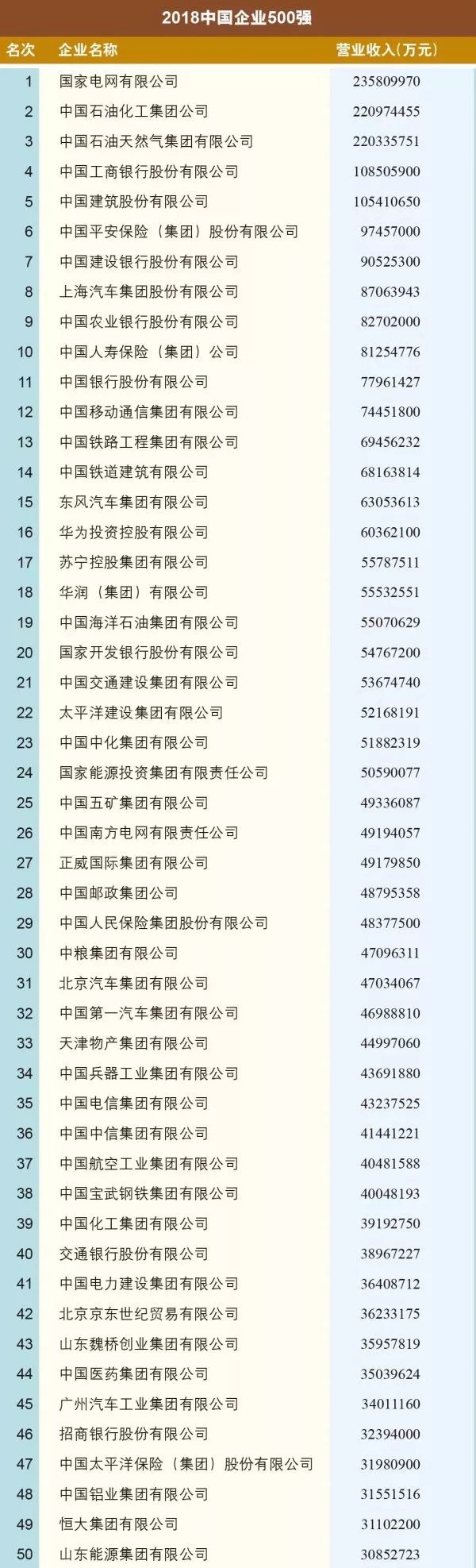 2018中国企业500强出炉!这十家中国大企业最赚钱