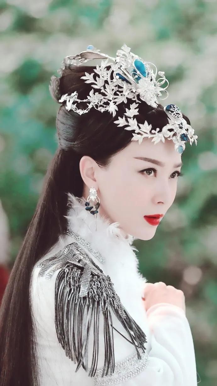 陈数在剧中饰演“圣后”,也是韩式大平眉加烈焰红唇造型。
