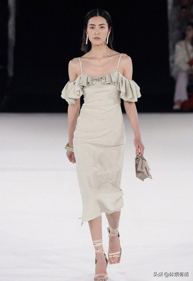 然而,刘雯在巴黎时装周的秀场上,刘雯穿着一件拖地长裙,