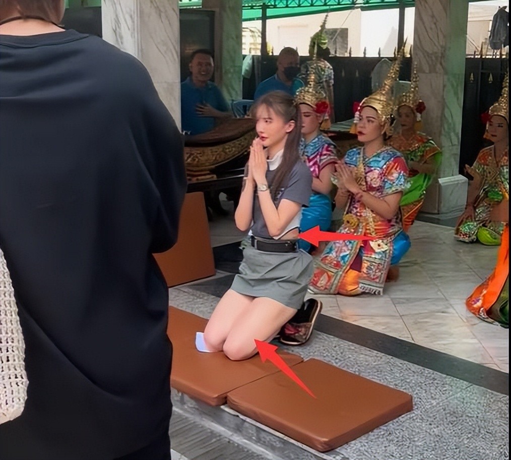 因为她穿着略微露骨的小T恤在泰国寺庙里祭拜,这样的形态是不受观众所待见的。