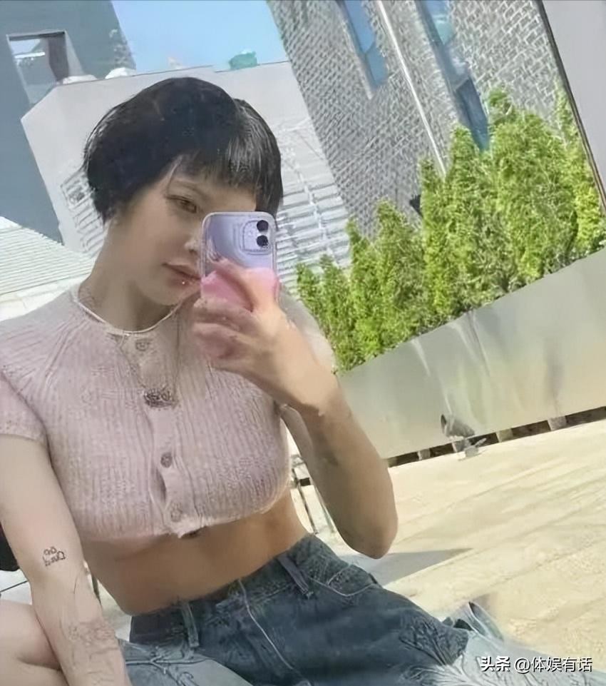 一身肚脐装,下身配上“牛仔内裤”,将她的好身材展现的淋漓尽致。