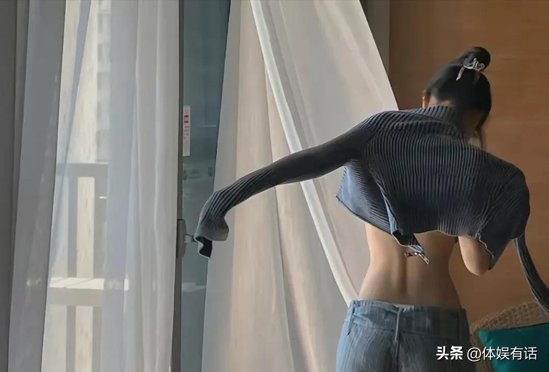 李菲儿高挺的背影,很有曲线,可能在室内,所以给人一种高级美感。