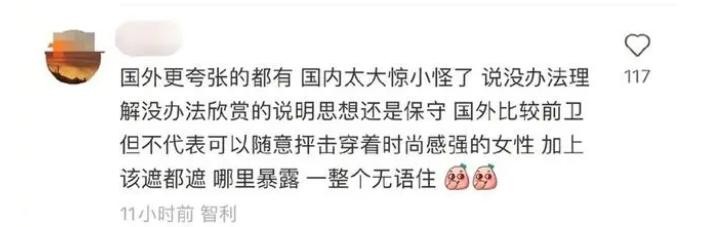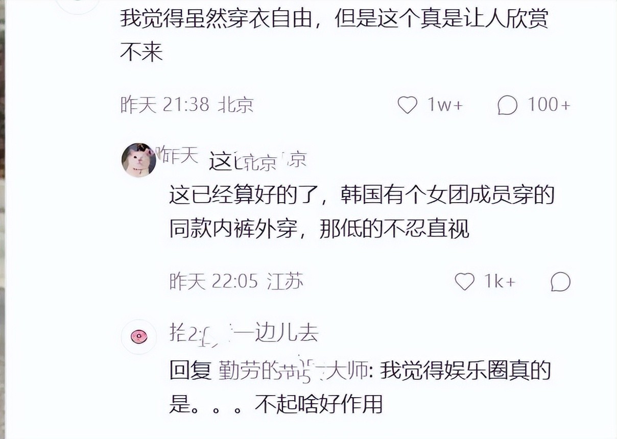 但也有人认为,这种穿法纯属就是在“曝光”“打擦边”“蹭流量”。