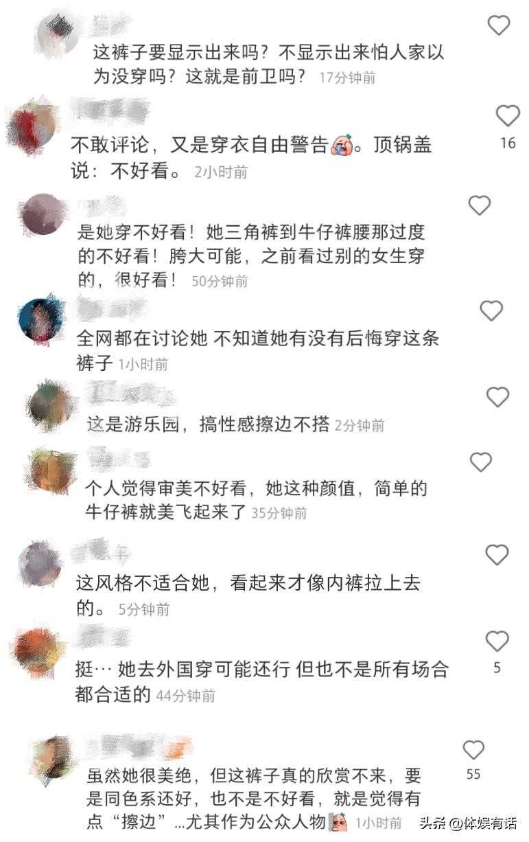 这样的穿着,很是辣眼睛,有网友认为作为知名艺人,穿衣要有度,不可肆意妄为。