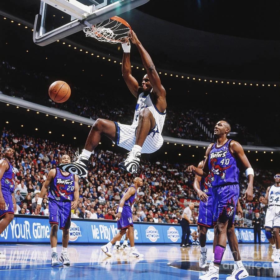 92-93赛季,奥尼尔大学时期早已名声在外,一进联盟便将超强的身体素质展现的淋漓尽致,3次在扣篮的时候将篮筐扣坏,其中一次直接将篮球架拉倒,让人叹为观止。奥尼尔新秀赛季便成为球队绝对的进攻核心,场均贡献23.4分13.9篮板3.5盖帽,帮助魔术队比上赛季多赢了20场比赛的胜利,如此恐怖的数据也让他直接入选全明星首发阵容,成为1984年迈克尔乔丹之后第一位新秀赛季便成为全明星首发的球员,毫无悬念当选为最佳新秀,入选最佳新秀一阵,成为联盟最具潜力的年轻球员之一。