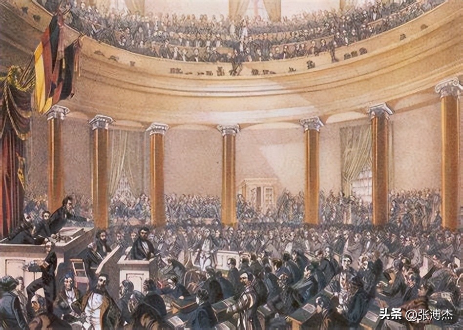 1848年春,德意志联邦各小州的保守派君主同样被迫接受自由主义宪法。1848年5月18日,由包括普鲁士和奥地利在内的德国各地代表组成的新德国国民议会在法兰克福召开。