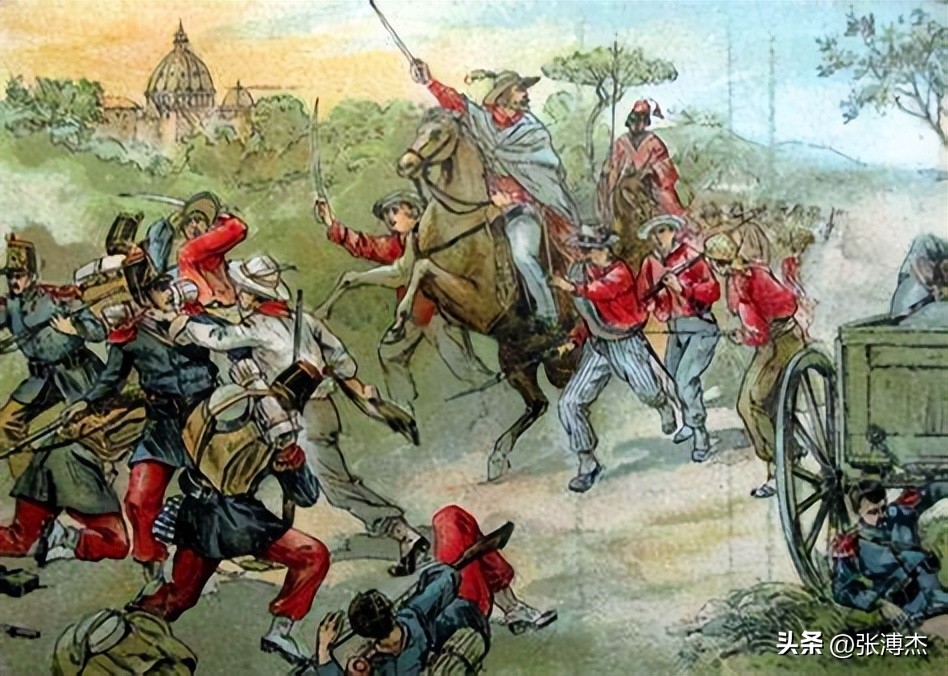 1849年3月,法国军队登陆罗马共和国。最初,人们希望这些法国军队会帮助革命,但法国人却占领了罗马城,并在路易·拿破仑总统的命令下推翻了罗马共和国。