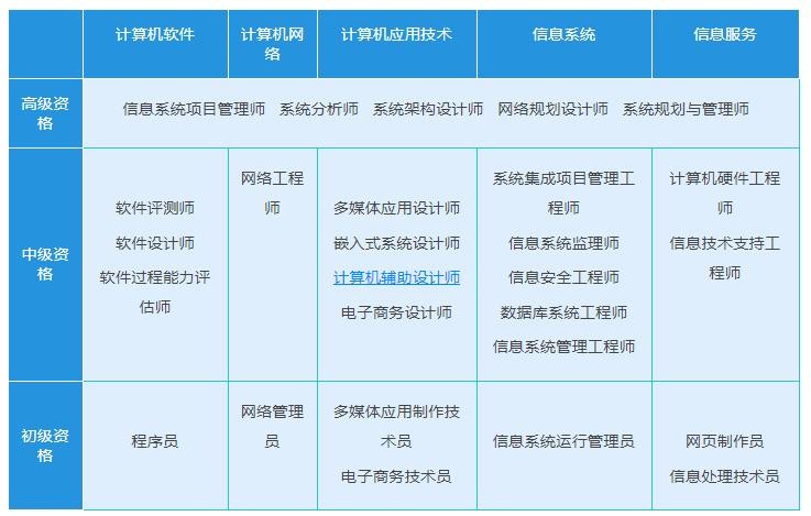 「 计算机技术与软件专业技术资格(水平)考试 」的全称是软考,由国家人力资源和社会保障部、工业和信息化部领导下的国家级考试组织。软考不仅是一种职业资格考试,也是职称资格考试,并具有水平考试的特点。