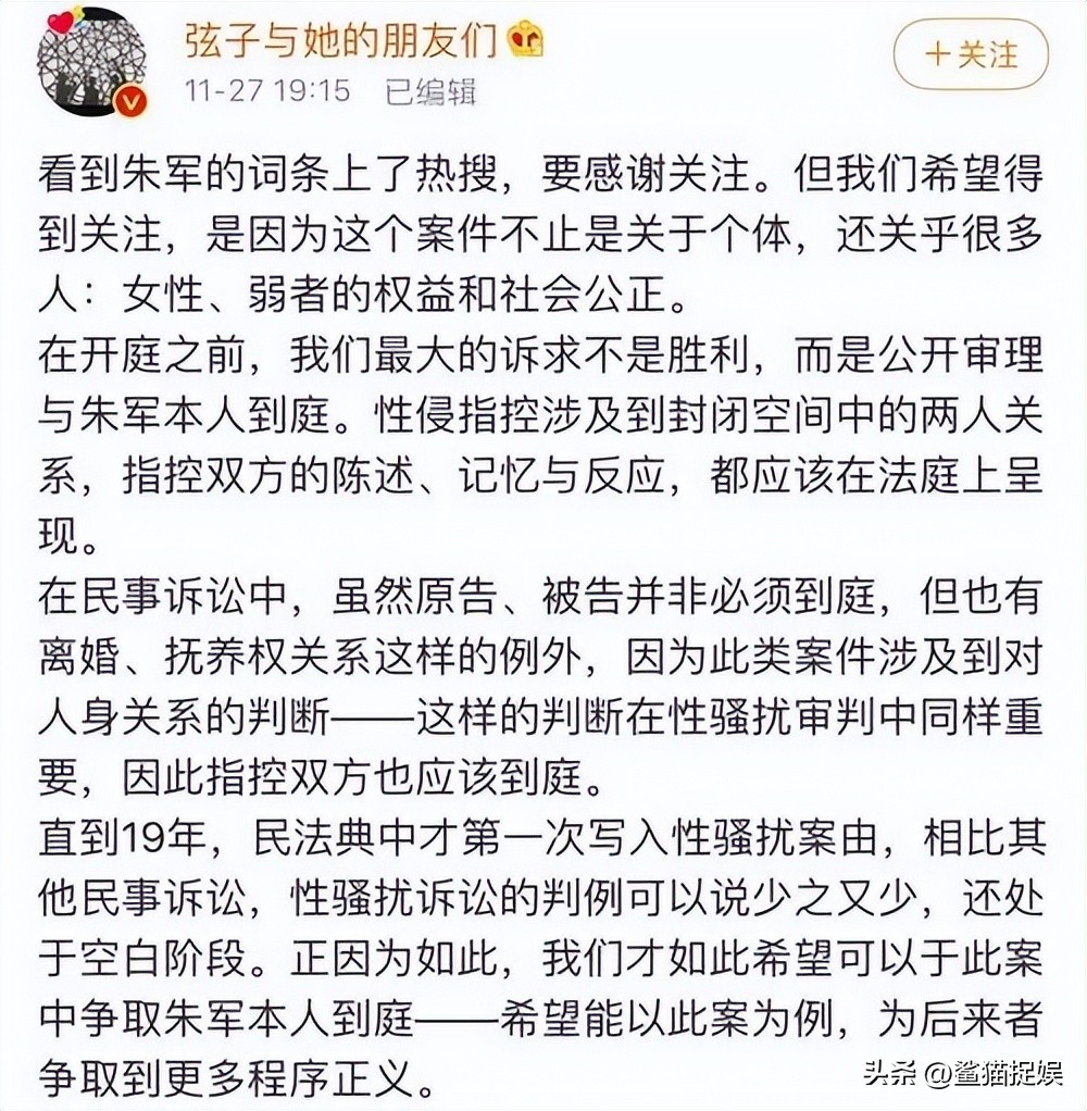 本以为这件事情已经过去了,但没想到在2018的时候,这件事情又卷土重来。弦子在网上发布了一篇小作文,控诉朱军猥亵她,并且还把细节描述得非常清楚,但她这个文章也漏洞百出。