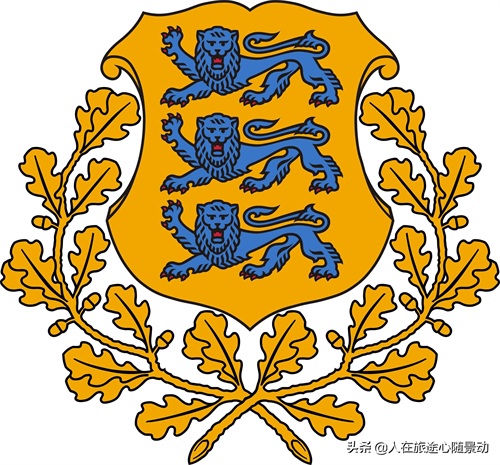 爱沙尼亚的国徽很奇特,橡树枝叶上托着三头蓝色雄狮。