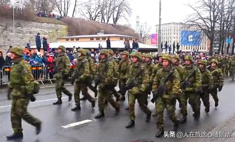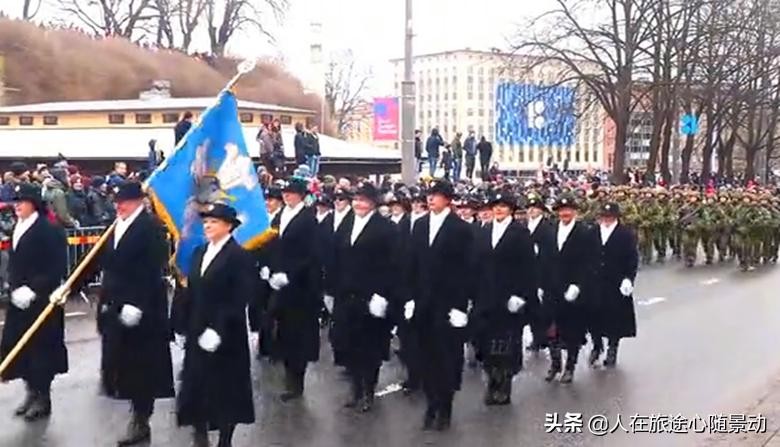 爱沙尼亚阅兵式,前面穿黑衣的是一群大妈,不知道什么意思