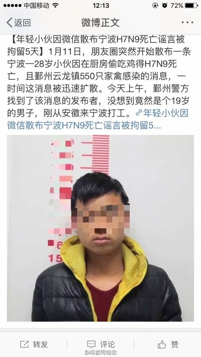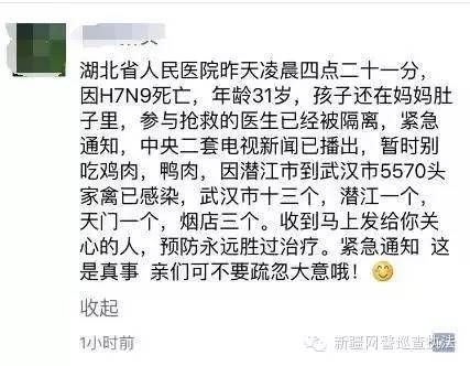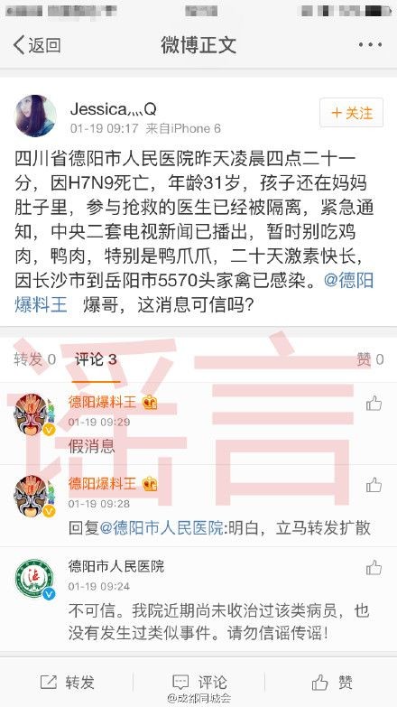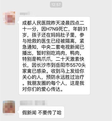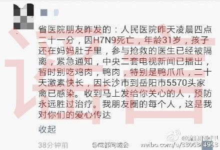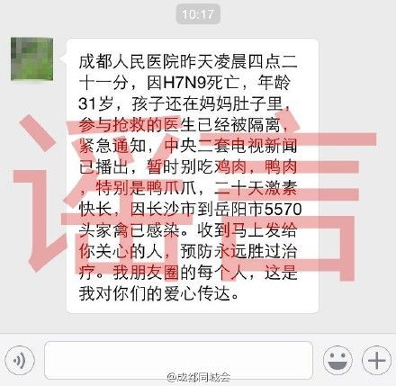 网传"成都孕妇死于H7N9" 几年前的谣言你还信?