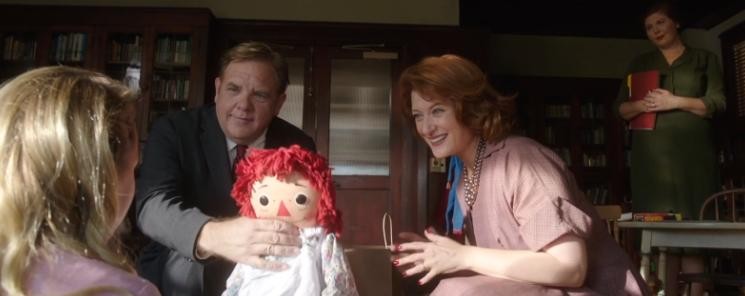 第五部:《安娜贝尔》。影片讲述鬼娃被男主人作为礼物带回了家,它的出现也为这个平静的家带来了神秘诡异的事件。