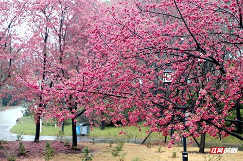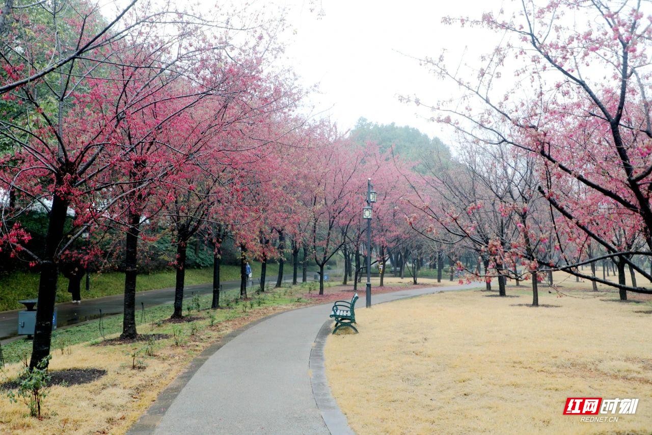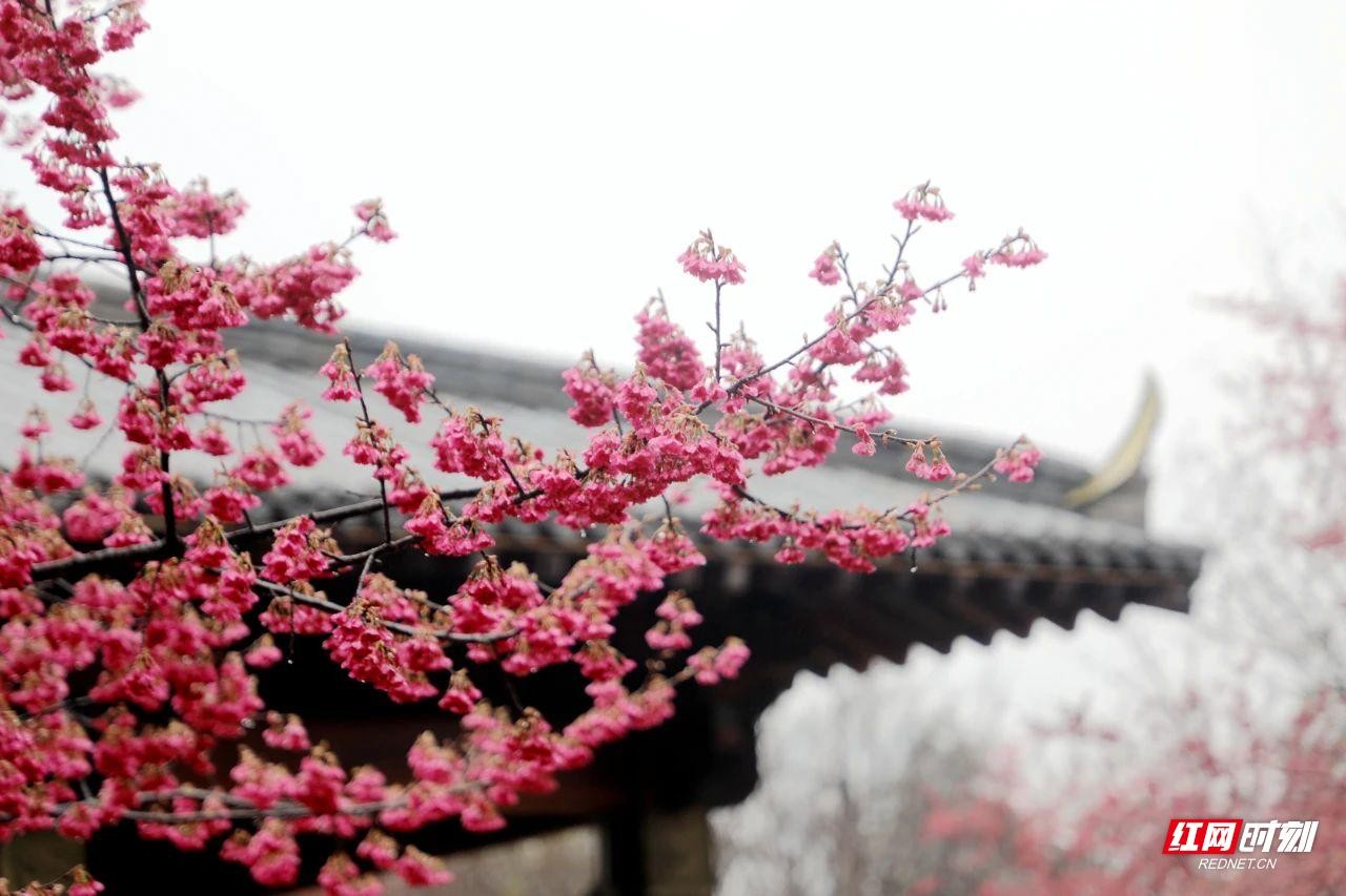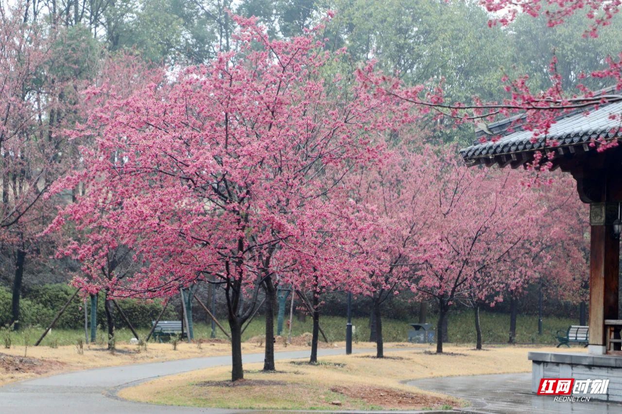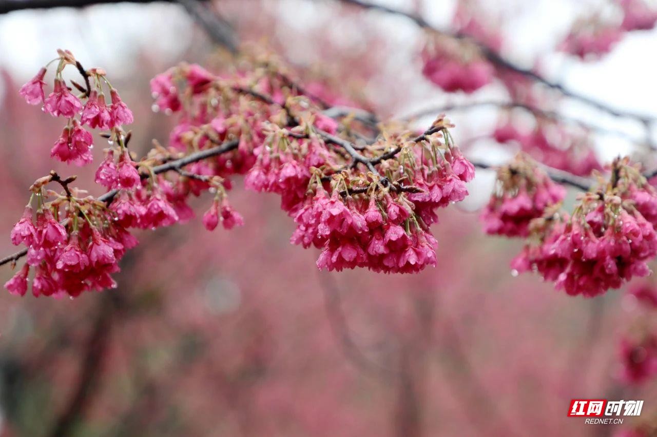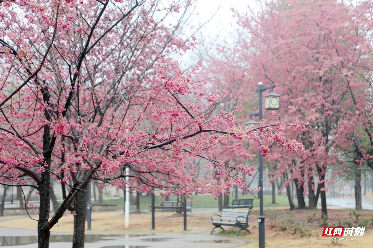 红网时刻新闻常德2月24日讯(记者 朱志姣 摄影 陈自德)近日,绵绵春雨洒落常德市城区,屈原公园内的樱花却在这雨幕中傲然绽放,为市民朋友准备一场春日限定的粉色邀约。