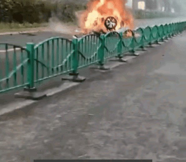 可以看到,车辆撞击后就引发了火灾,随后坠落地面,燃起的大火,瞬间吞噬了整辆车,不幸地是司机也未能逃脱。