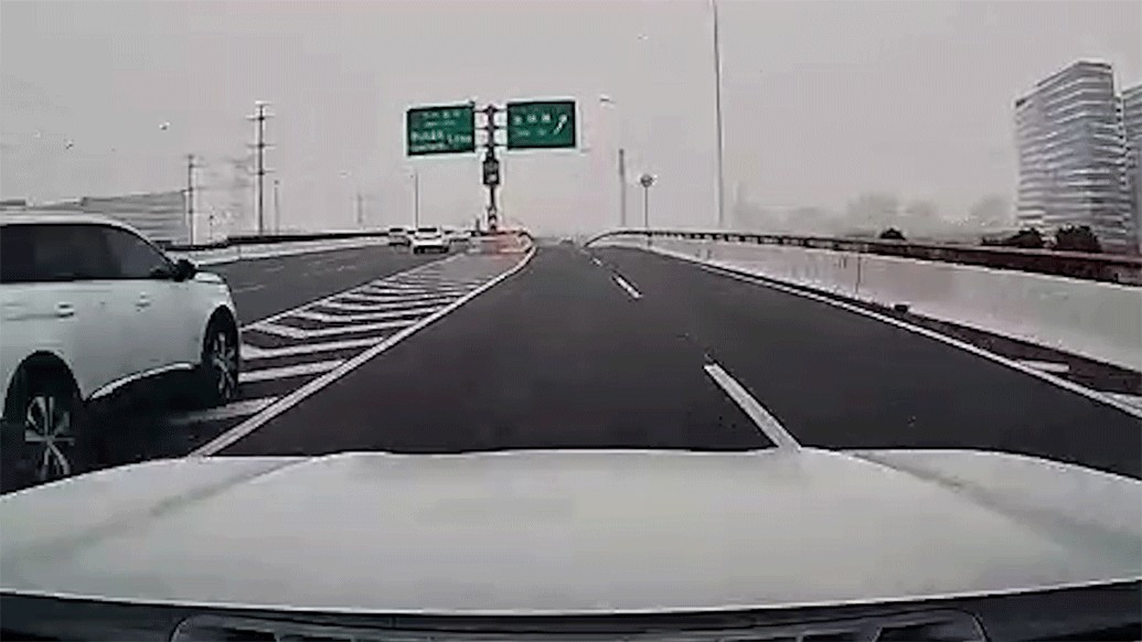 仔细观察后车记录可发现,猜测司机不知因何事分散了注意力,并且未减速,如果当时判断无法避免撞击,不打方向,正向撞击防撞垫,估计可以捡一条命,最多截肢,看来最后一刻还是存在侥幸心理,认为可以打过去。事实上他的超速行为和不按交通导流线行驶已经是一种危险驾驶,严重危害到自己和其他道路交通参与者的安全,值得大家深思。